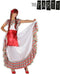 Het kostuum bestaat uit een lange, zeer wijde rok, een bovenstuk en een opvallende rode schort. De versieringen met een paars, rood, oranje en groen gestreepte bies geven het geheel een authentieke uitstraling. Dankzij de one size pasvorm is het kostuum geschikt voor verschillende lichaamstypes, waardoor je je vrij kunt bewegen en genieten van het feest.